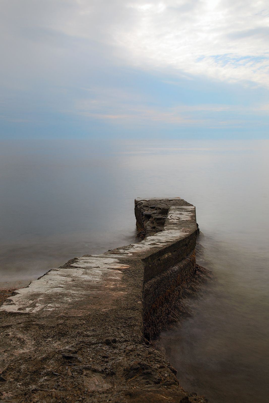 Molto bello la contrapposizione tra il setoso dell'acqua e la durezza della roccia. Il mare sembra scemare e mescolarsi nel cielo. Molto bella.