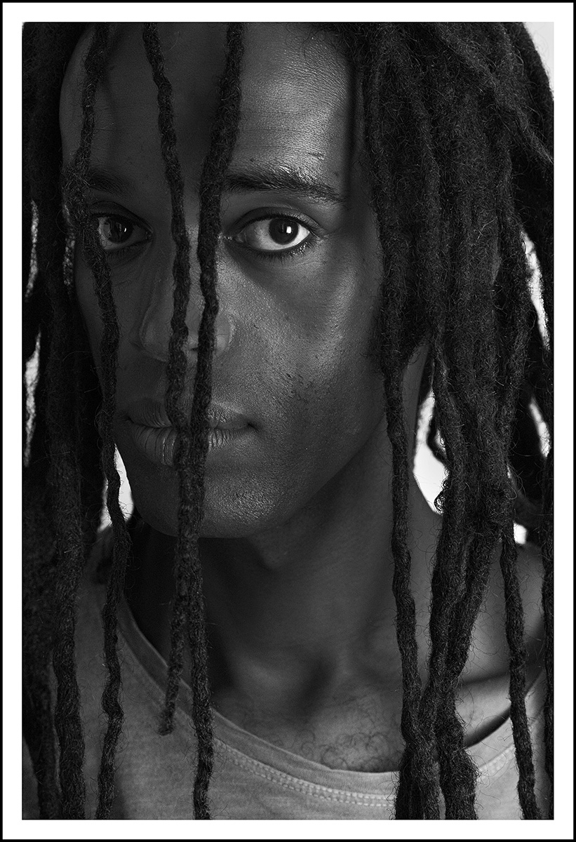 Per quel che riguarda la posizione del dread che copre in parte l'occhio di sx devo dire che è una cosa voluta: ho fatto posizionare i dread in modo che coprissero una parte del volto, stando attento però a lasciare che si vedesse l'iride di entrambi gli occhi.