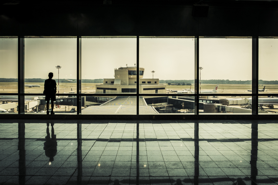 Una grande sala d'attesa , il formato 16:9 rende perfettamente la visione di questo luogo. Una persona guarda fuori , senza bagagli ..fa pensare sia in attesa di qualcuno..verrà, non verrà?.