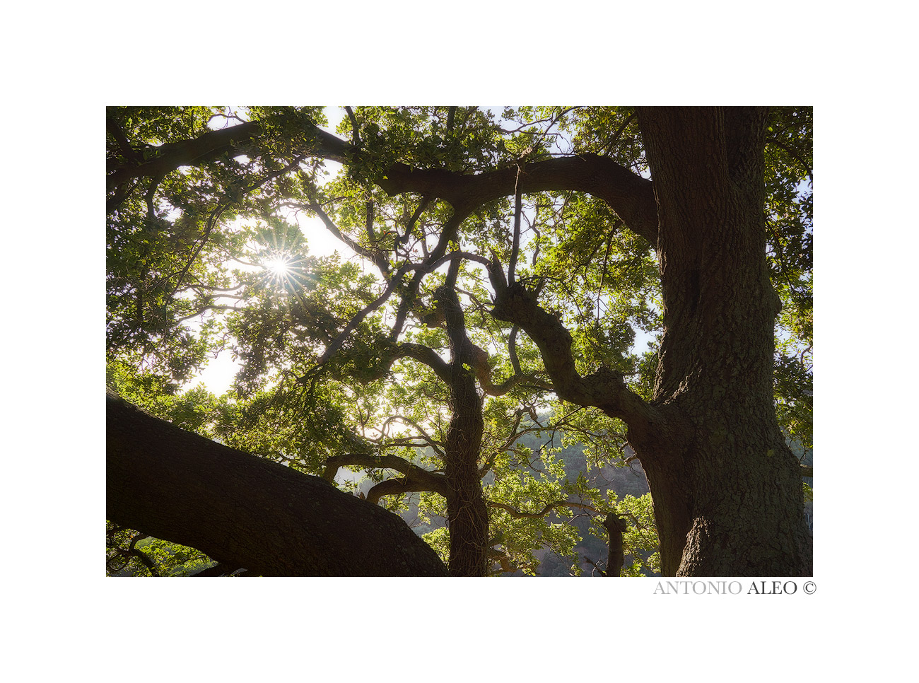 Una quercia secolare in un vecchio sentiero abbandonato. Quercia in una posizione molto difficile da fotografare, in un burrone scosceso.