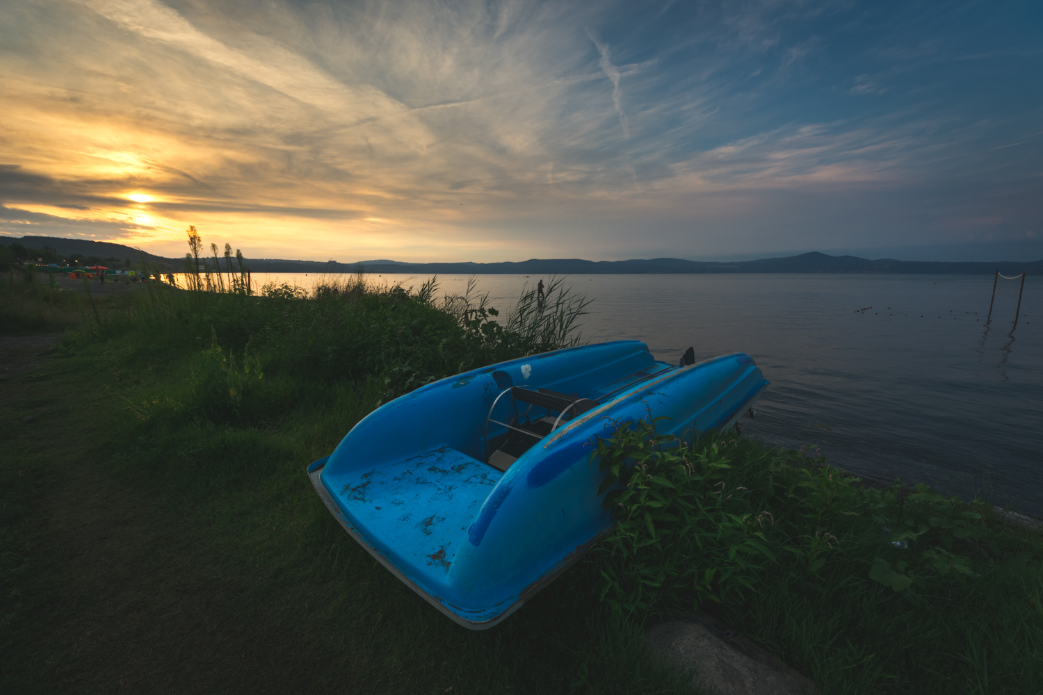 Bello scorcio. Da abbassare selettivamente le luci nella zona in alto a sinistra per recuperare qualche dettaglio ed accentuare il contrasto tonale e cromatico generale. Aumenterei anche la luminosità selettivamente sulla barca per farla risaltare maggiormente tra l'erba scura. Allego una versione con le modifiche sopra suggerite. Dovesse disturbare la eliminerei subito.