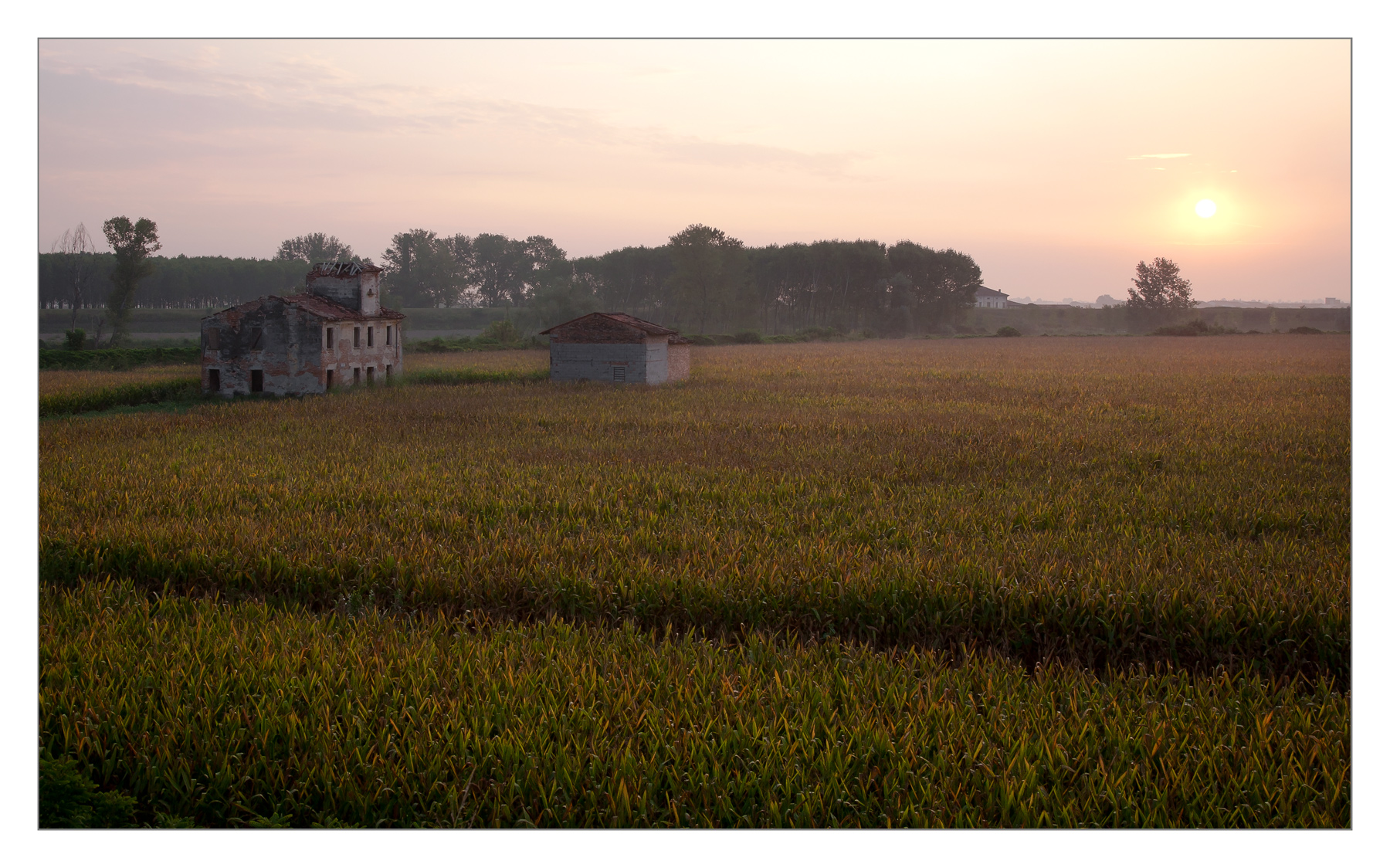 Semplicemente bella.... che sensazioni passeggiando all'alba per questi campi, veder sorgere il sole dalle finestre di quei casolari... sai regalare sempre emozioni con le tue albe..Bravo Claudio  _________________