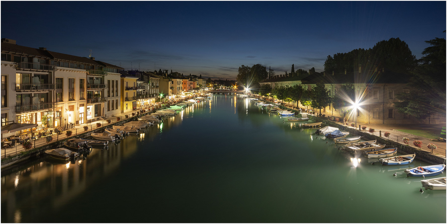 Molto bella questa notturna sul canale con tutte le barchette a riposo illuminate dalle luci artificiali..Ben vista
