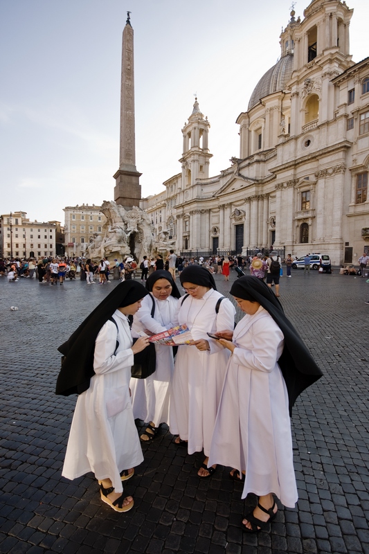 Simpatico e ben ripreso questo quartetto che forma due diagonali che guidano ancor più l'occhio verso le superbe architetture dello sfondo. Ciao  |