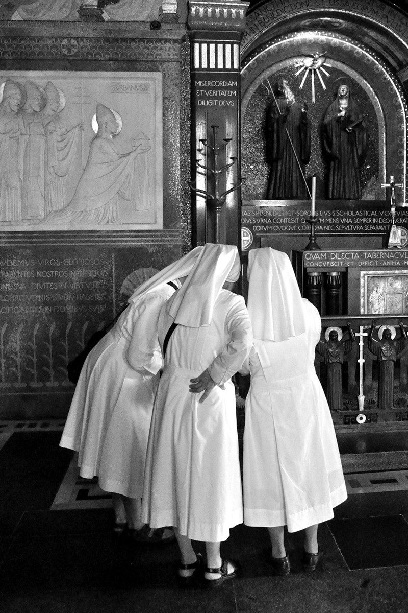Grazie Marisa,Giacomo e Giancarlo per i graditissimi commenti.Felicissimo ed onorato,Marisa,per la tua preferenza.Ora in due foto vi svelo l'oggetto della curiosità nostra e loro.Nella prima sembra che la sorella stia pregano;ma avvicinando...Cinghia stretta sulla mano,fotocamera poggiata sulla balaustra,pochissima luce e tempo lento.Poi tutte a vedere il risultato!
