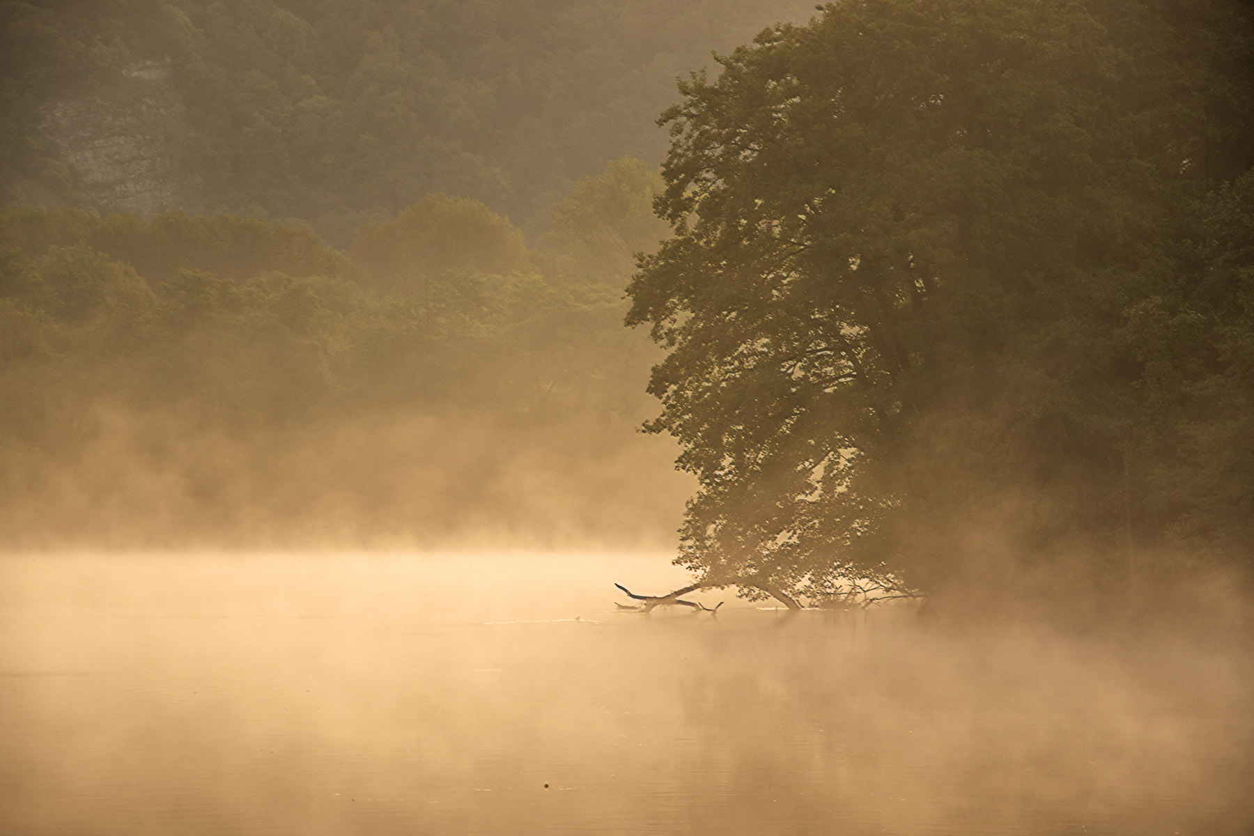 Qui hai optato per una composizione minimale: acqua, vapore e vegetazione.