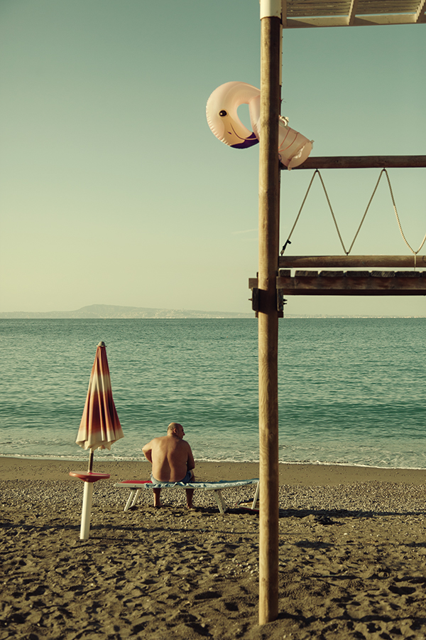 Purtroppo vuoi per la distanza fra l'uomo e il gonfiabile nel frame, vuoi per la presenza di ombrellone, palo e paesaggio, vuoi per il trattamento "ercoliano" che pure ammiro ma che qui rischia di appiattire la lettura, a mio gusto vedo lo scatto un po' debole.