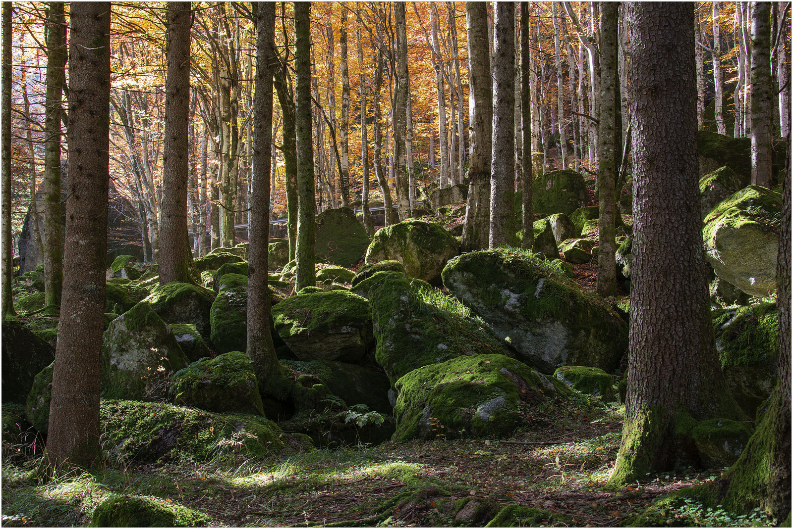 Un ammasso.. di massi secolari, ricoperti dal verde di muschio.. illuminati dai colori autunnali..molto piacevole. Ciao