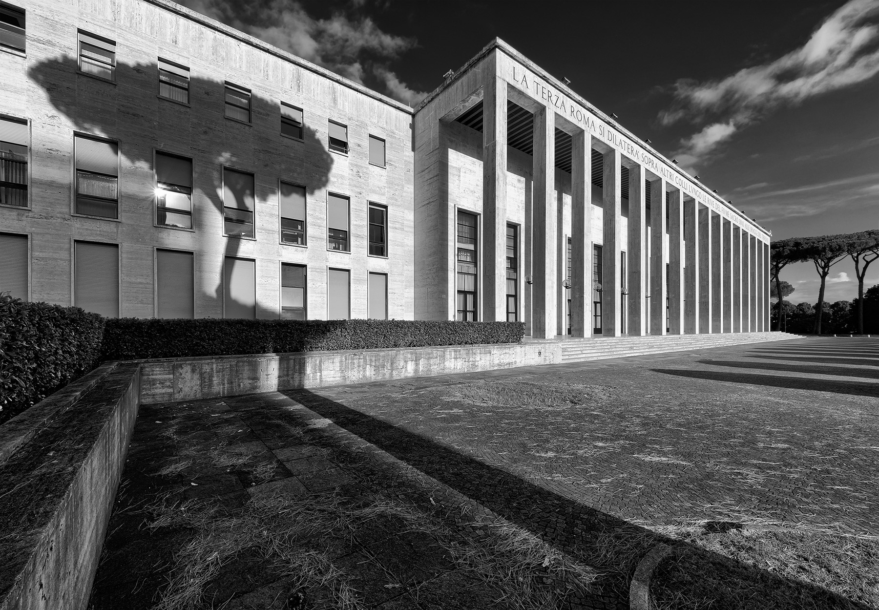 Precisa nelle verticali e con un b/n che esalta proprio i materiali utilizzati nella costruzione del famoso quartiere romano.