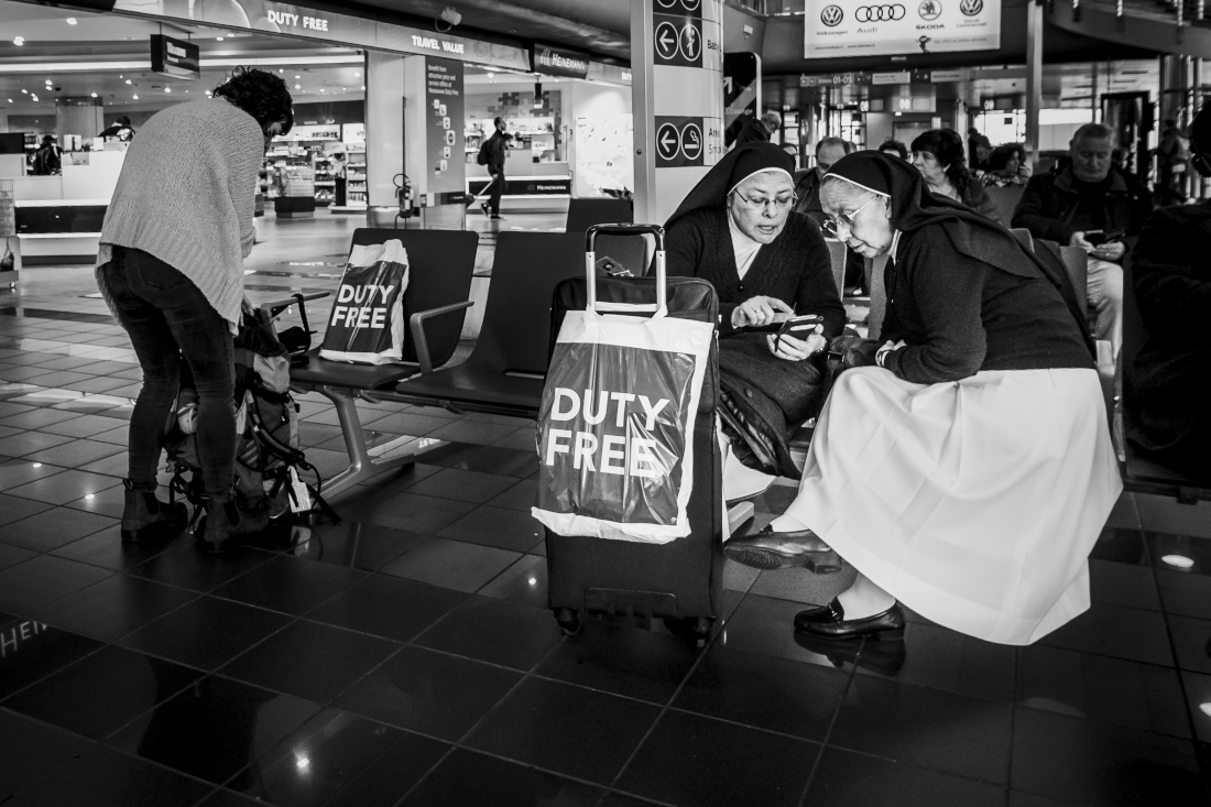 Un tempo era il libro di preghiere ad intrattenere i religiosi,oggi queste moderne suore risultano molto simpatiche e ben inserite in questo movimentato ambiente.Bello anche il bn. Ciao,Sergio. _________________ Sergio Demitri https://www.flickr.com/photos/124946035@N02/ |