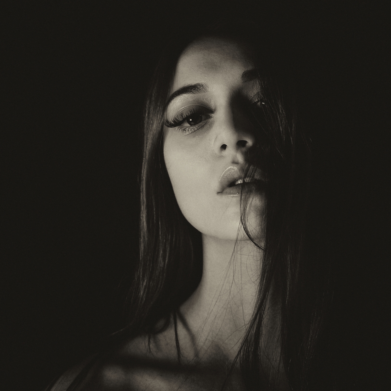 Molto molto intrigante e misteriosamente sensuale.Un bel gioco di chiaro scuri, con un piacevole disordine dato da questi ciuffi di capelli movimentati.