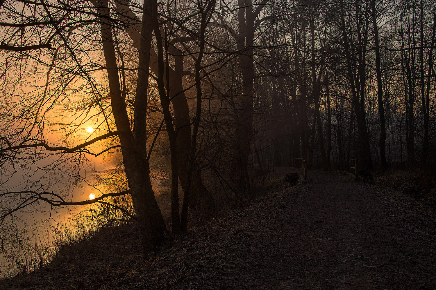 Bellissimo questo sole che si rispecchia nel fiume.. e la parte dello stradello lasciato al buio.. piacevole ripresa e colori.