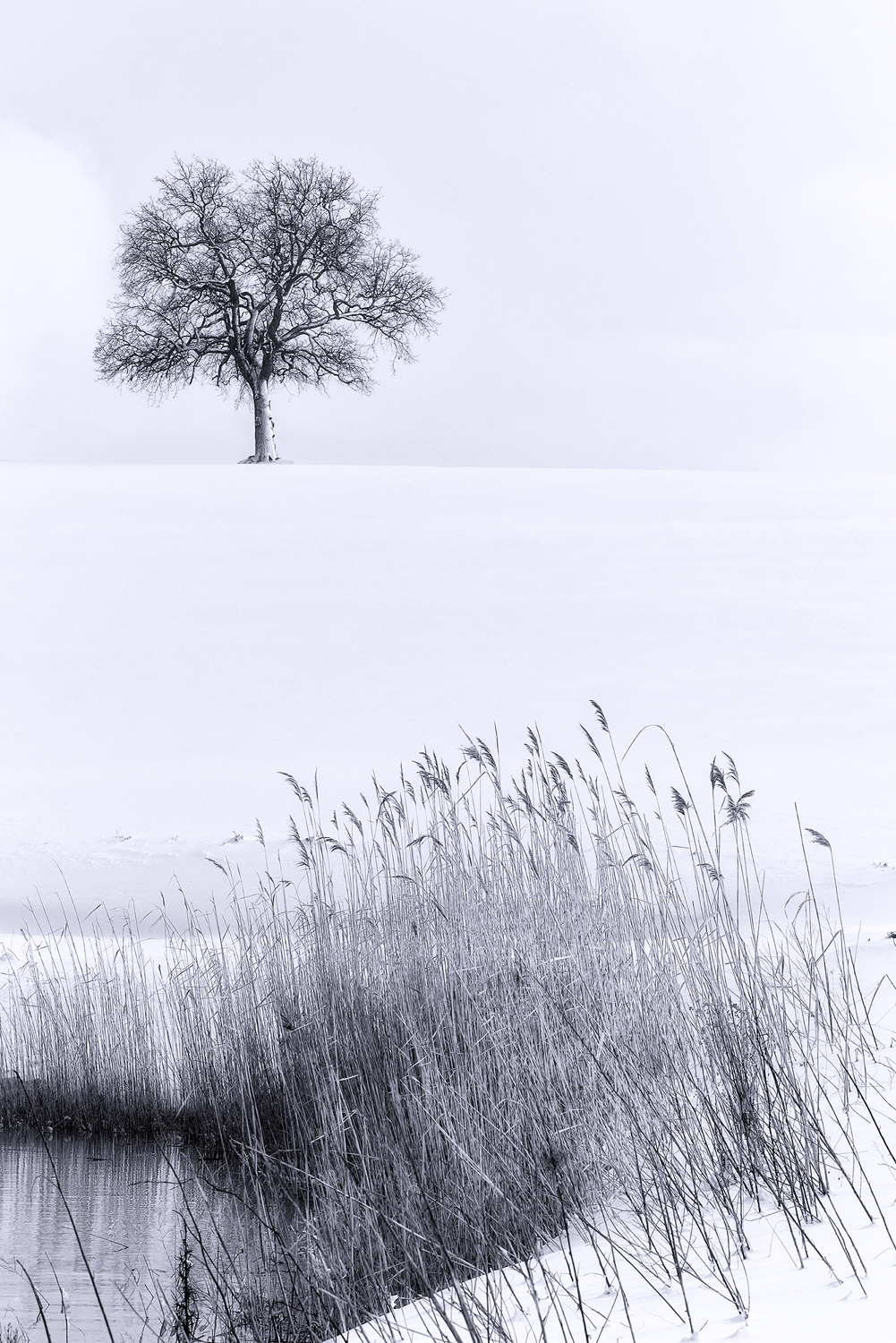 I rimandi grafici tra primo piano e albero dietro si accompagnano deliziosamente nella coltre bianca.