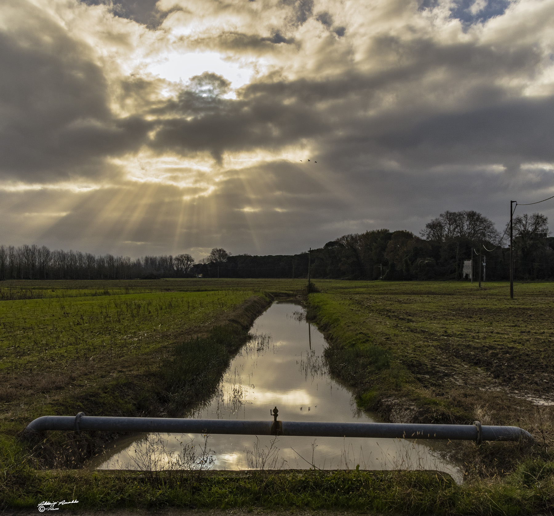 Originale visione, bellissimi i raggi filtranti fra le nubi.