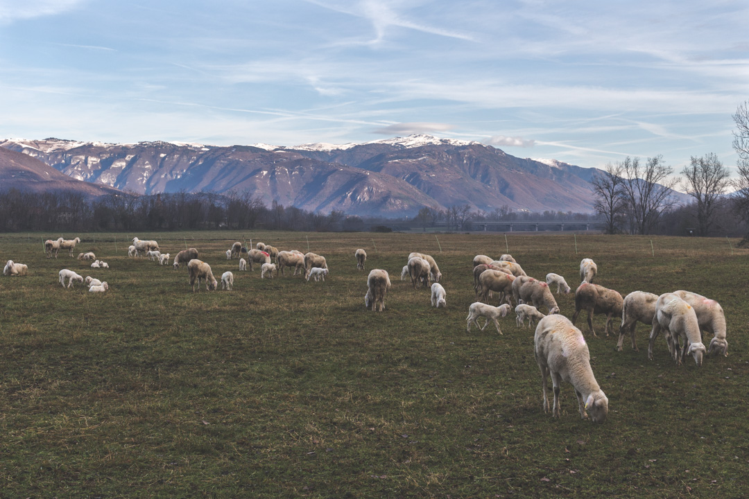 Secondo me sarebbe più bello far spiccare le pecore da un prato più scuro e ben contrastato.