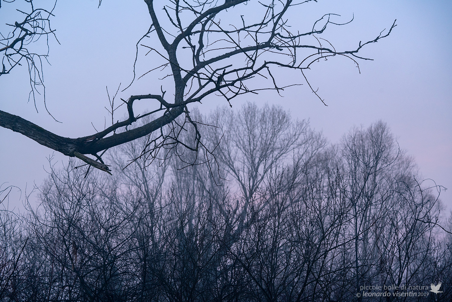 Bella atmosfera mattutina, fredda al punto giusto, bella la sovrapposizione dei vari gruppi di rami. Non so se in basso si poteva risolvere meglio il taglio netto.