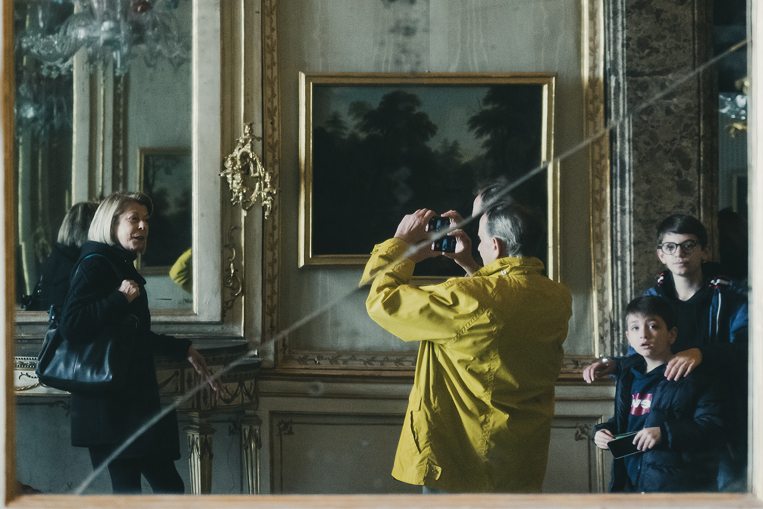 Una bella scena nel complesso, lo scatto amp lo fanno i due ragazzi che guardano. Forse eliminerei la cornice dello specchio.