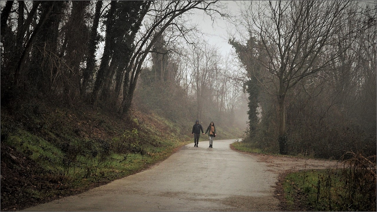 Immagine un po' malinconica per l'ambientazione autunnale, ravvivata dal legame che si intuisce esistere tra i due soggetti.
