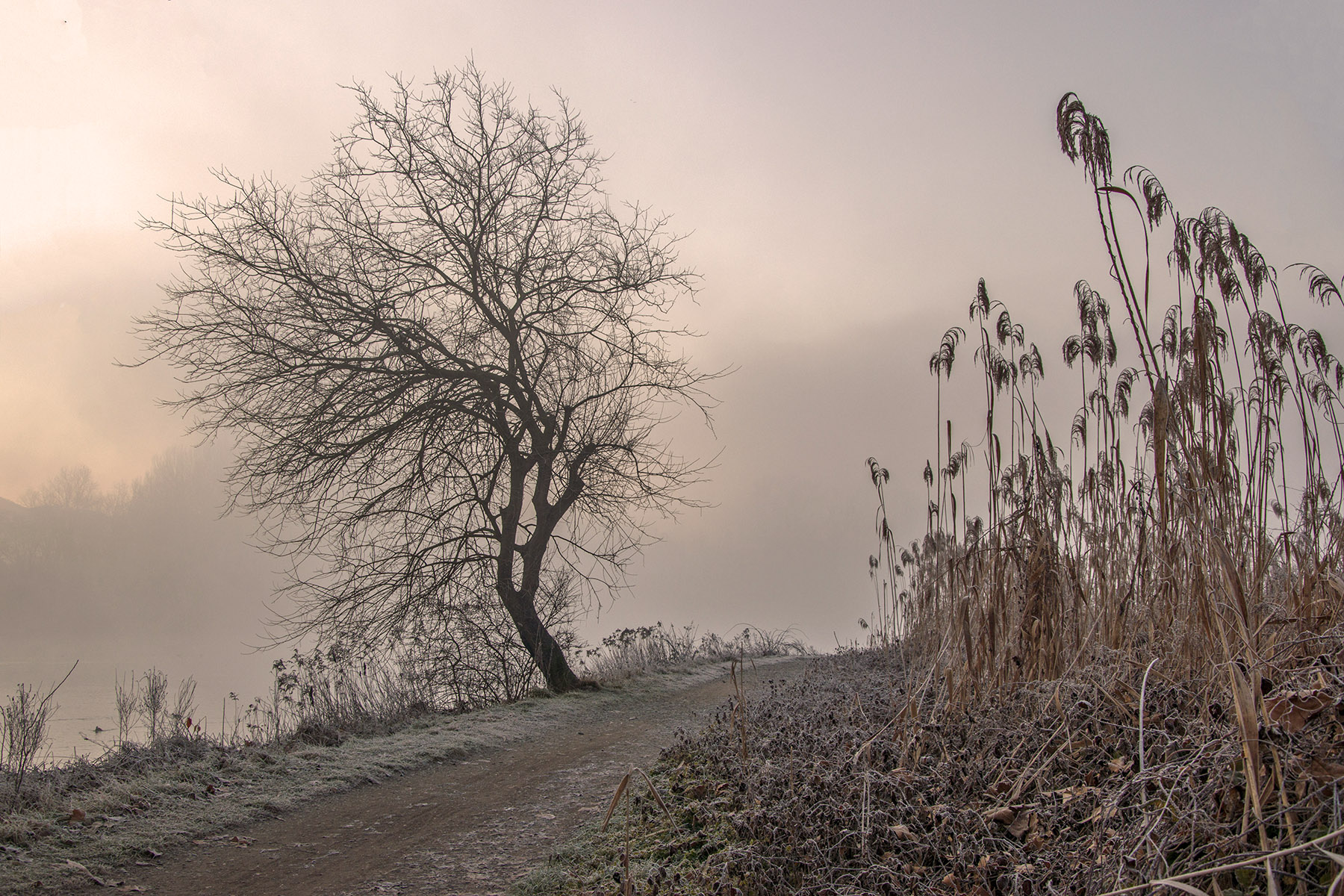 Il freddo del mattino e i colori ovattati dalla nebbia