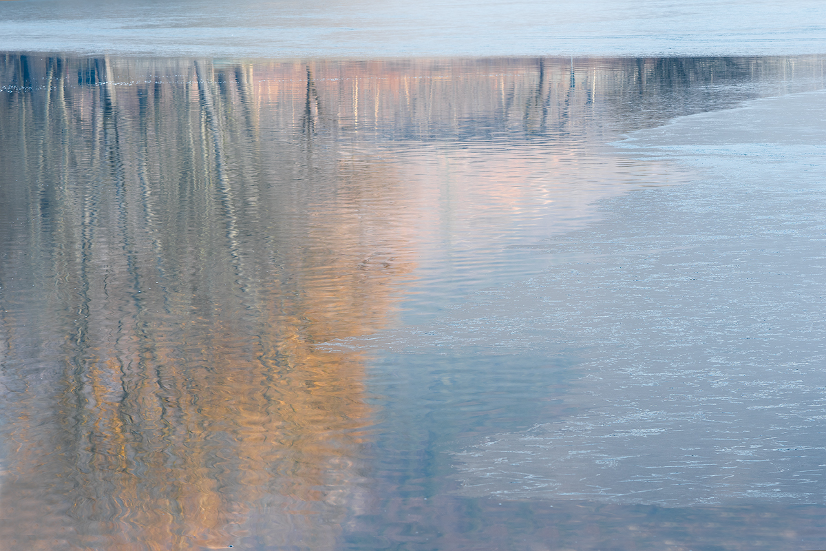 Una intima compenetrazione di cromie calde e fredde. Trovo azzeccata la scelta di lasciare quella striscia azzurra in alto. Togliendola, secondo me, si cadrebbe nella rappresentazione più scontata di un semplice riflesso. ciao  |