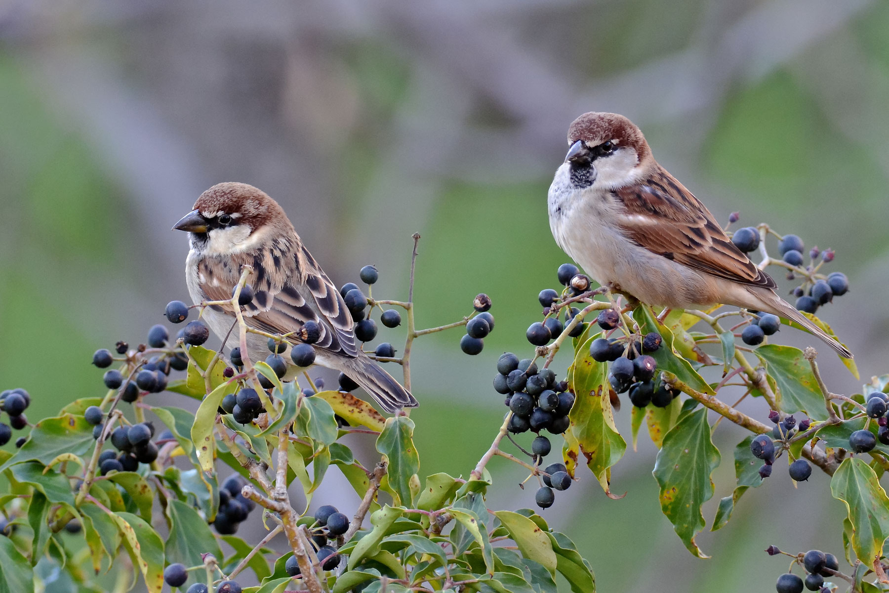 Ottima questa immagine Francesco... due belle passere italiche a riposo tra le bacche d'edera.
