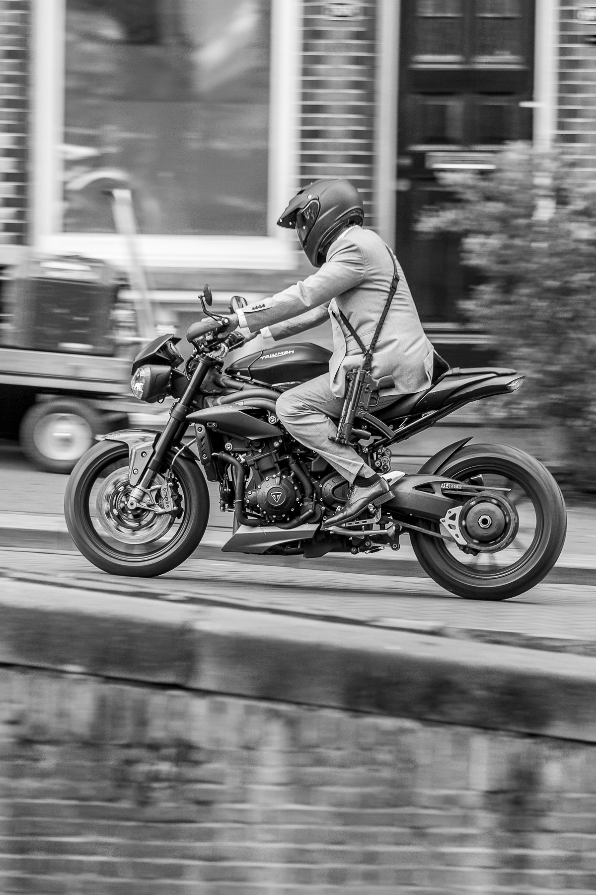 Moto senza targa e mitra al fianco...da aver paura...