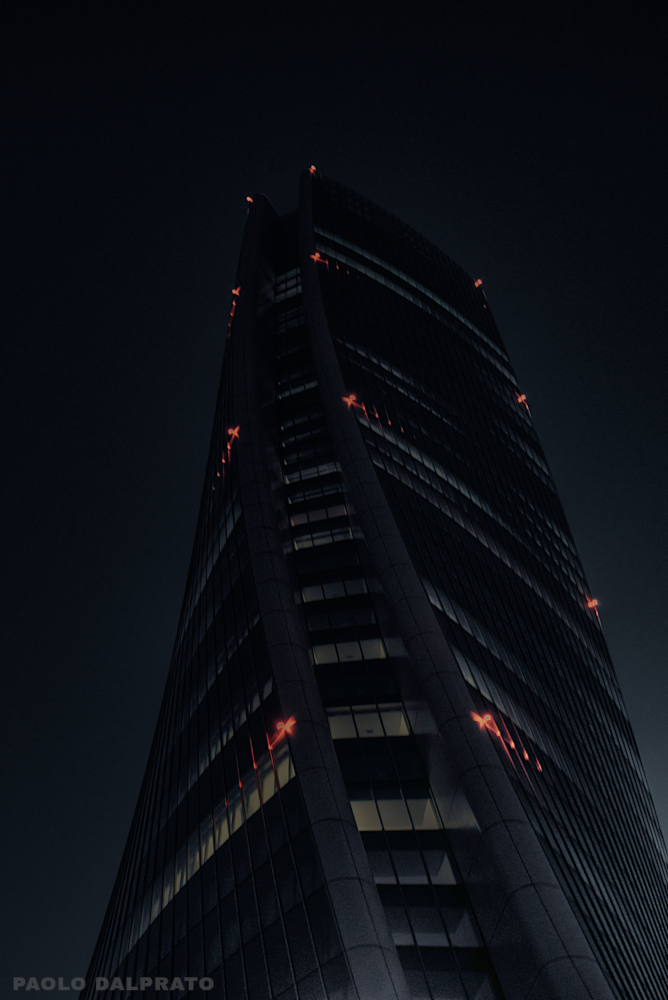 Bella interpretazione in chiave dark in cui la torre sembra perdersi nel buio del cielo  |