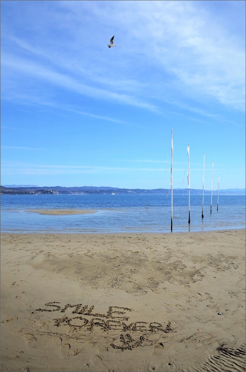 Un mare d'inverno che effettivamente regala più di un sorriso.Le eleganti e rilassanti tonalità del blu sfumano tra cielo e terra..in un paesaggio ordinato e pulito, con quei pochissimi elementi che sanno fare la differenza, donando la giusta profondità e quel tocco evocativo che un volo sa regalare. Sorridere sempre..un bel messaggio. Bravo  _________________