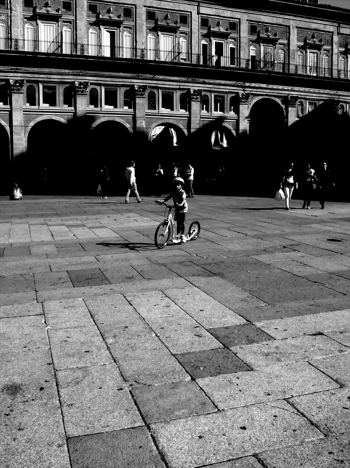 La ripresa da ampio spazio supergrandangolare (da cellulare) al primo piano creando una sensazione di ampiezza e "vuoto" ma è una sensazione appunto data dal grandangolo... e per questo non riesco a percepire il senso della piazza vuota, se questo era l'intanto iniziale. Se invece si vuole semplicemente documentare il presente allora , beh il discorso è diverso. In ogni caso non mi convince il bn; troppo ampio il fascione di nero al centro frame e poco sviluppati i toni medi e i bianchi (serve maggior contrasto tonale) sul primo piano.