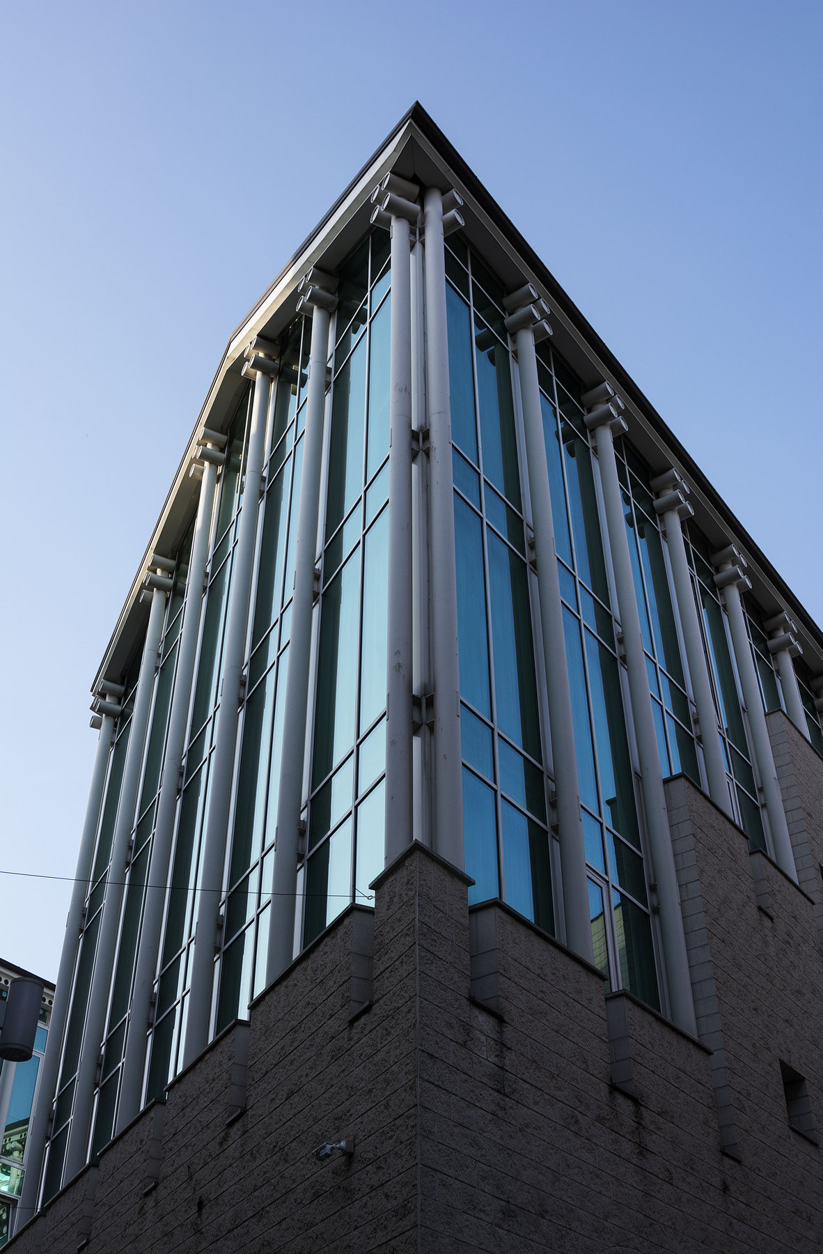 Notevole slancio verso l'alto di questa struttura,piacevole composizione e colori.Forse l'angolino a Sx è un pò di troppo..
