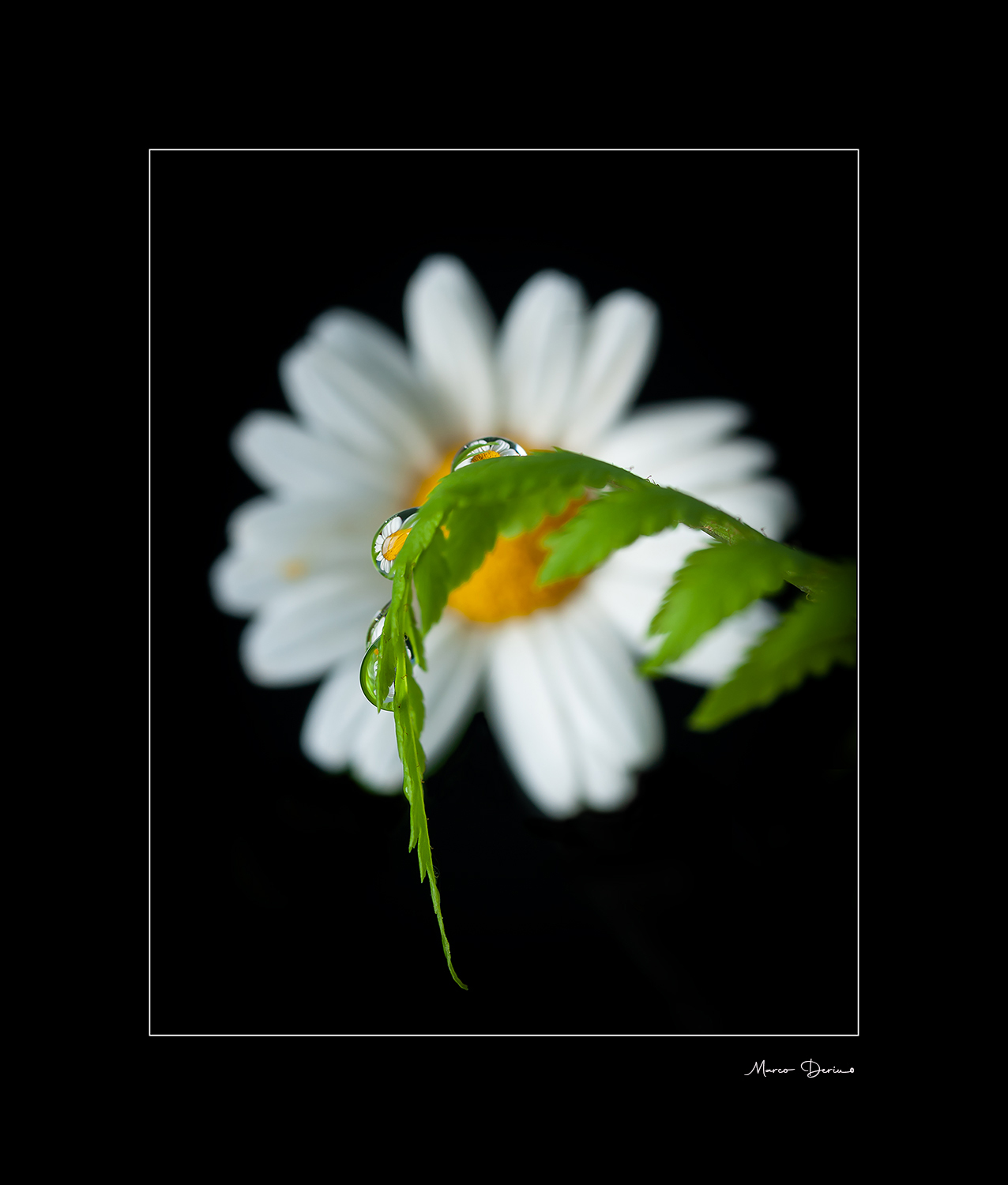 La margherita,pur se fuori fuoco,cerca di rubare la scena alle gocce che la riflettono.Immagine di notevole tecnica molto ben presentata. _________________ Sergio Demitri https://www.flickr.com/photos/124946035@N02/ |