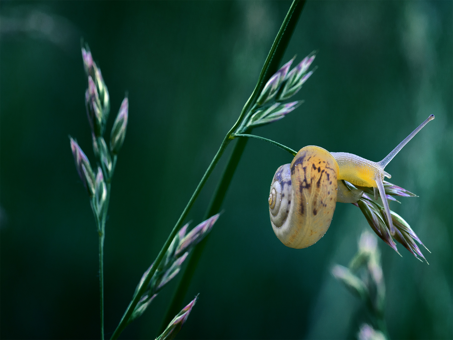 Veniamo alla foto, la regola vorrebbe più aria davanti i soggetti ma, in questo caso mi sembra che possa funzionare anche così con la chiocciola che sembra voler uscire di scena.