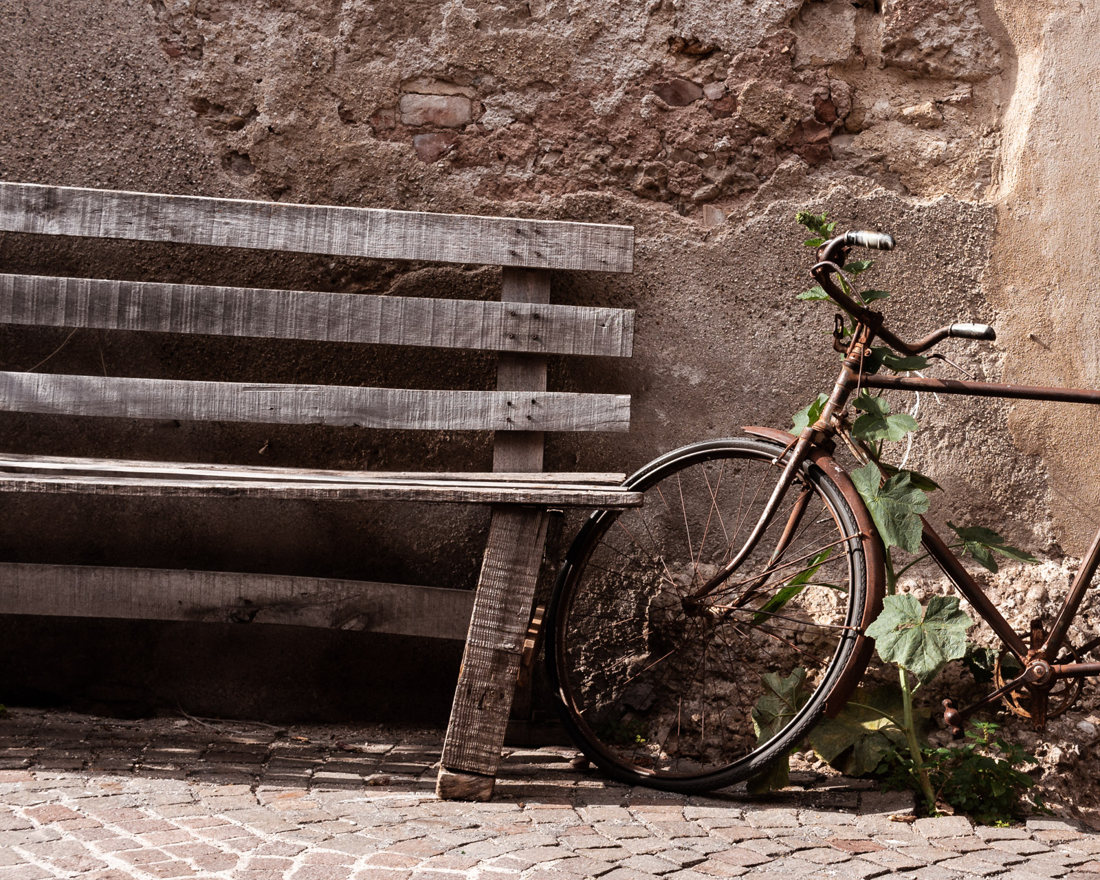 Piacevoli accostamenti..tra la bicicletta e panchina..