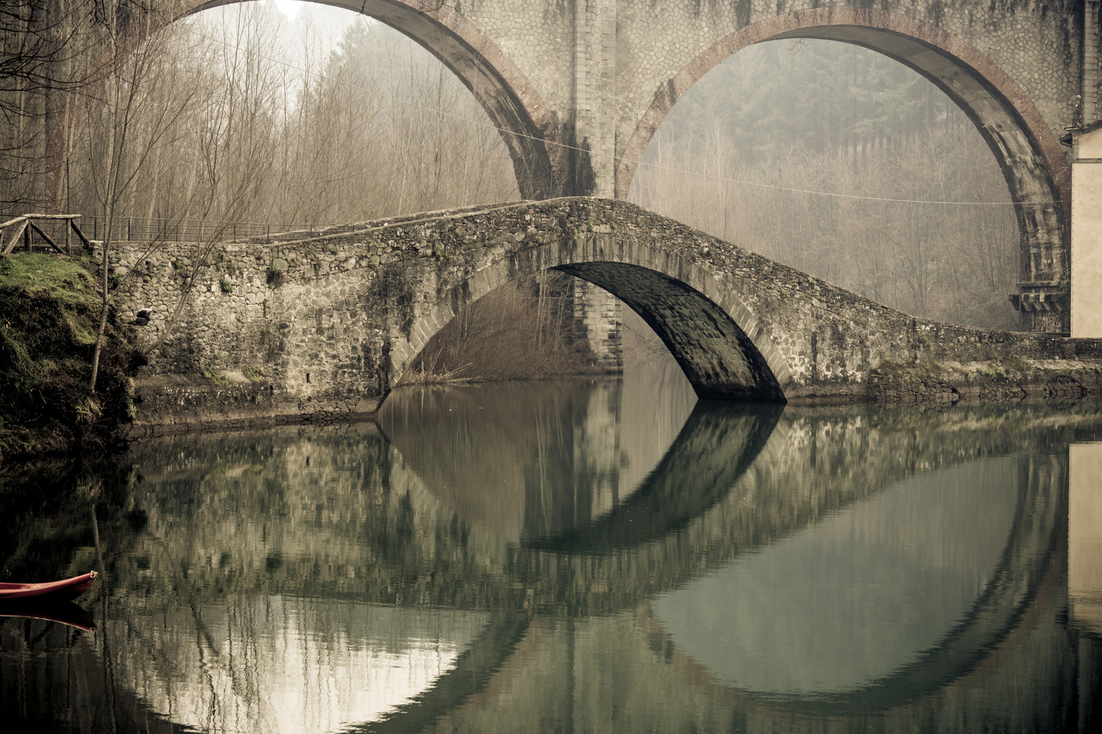 Ponti e riflessi creano dei piacevoli disegni, forse la canoa si potrebbe clonare.