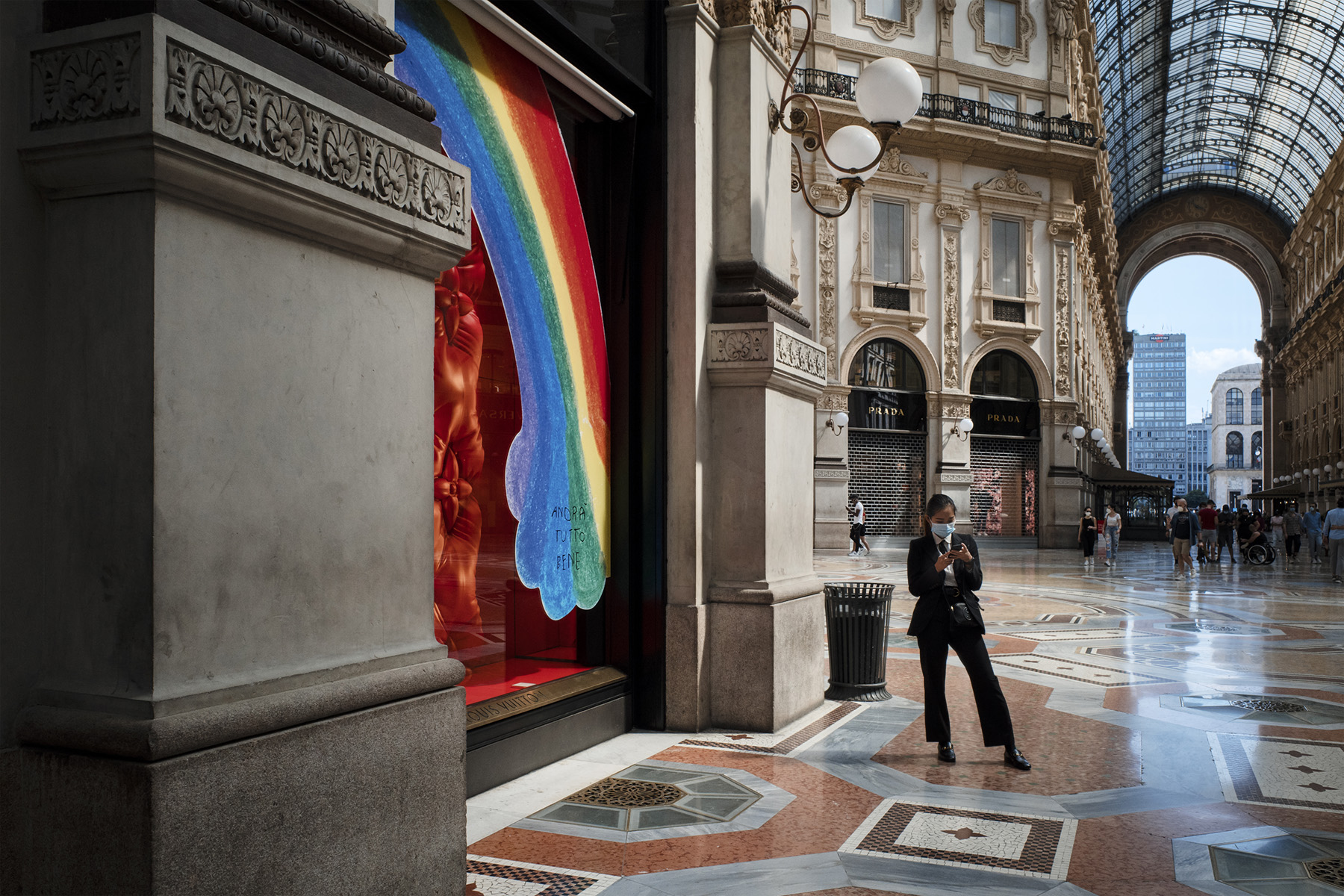 Anche se compaiono ancora le mascherine,l'arcobaleno e la piccola scritta benaugurante accendono la speranza.Notevole la posa della donna che nelle gambe richiama i motivi della vetrata.Per il resto ottima realizzazione.Complimenti! Ciao,Sergio. _________________ Sergio Demitri https://www.flickr.com/photos/124946035@N02/ |