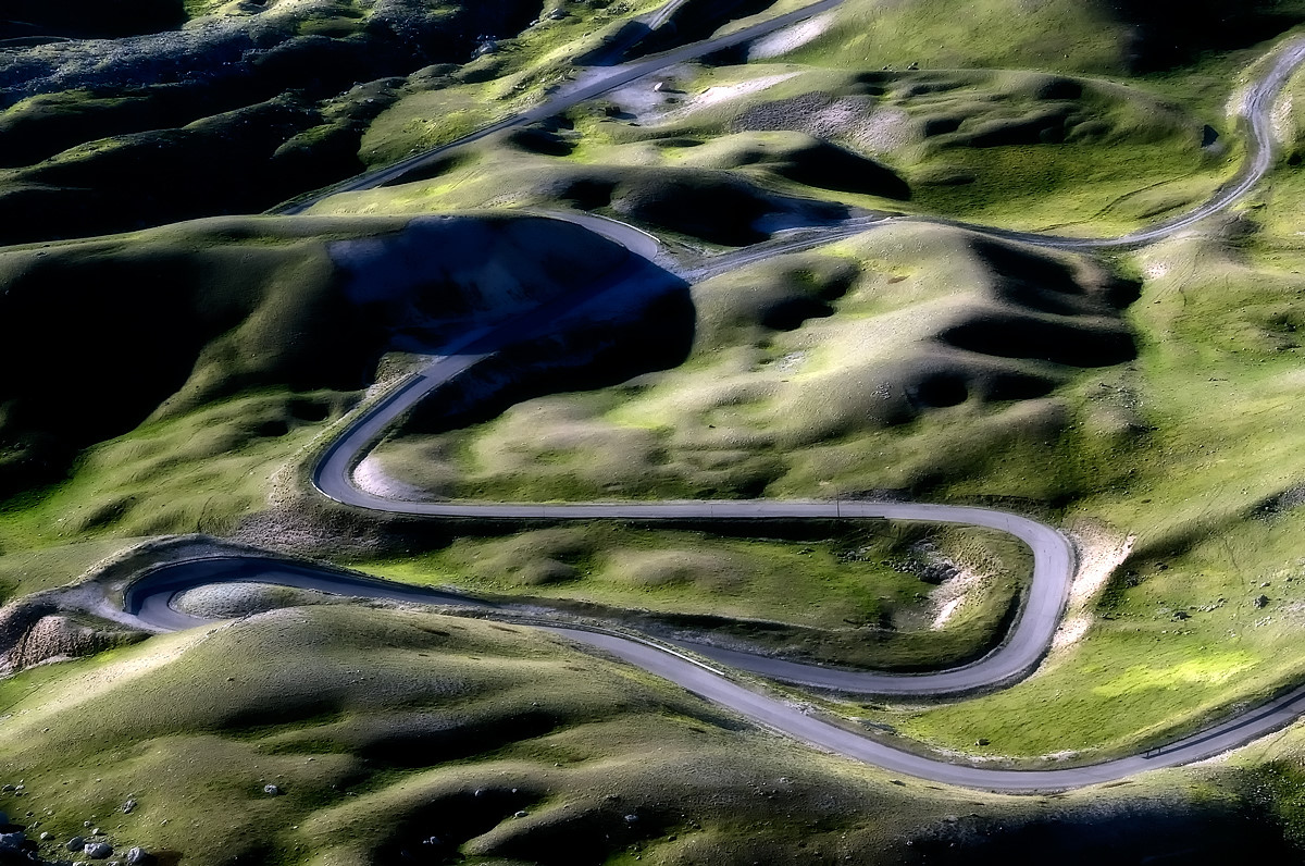 Avendo a disposizione uno scatto in origine sicuramente interessante e ricco come questo (per lo sviluppo della conformazione del paesaggio, per la sinuosità della strada che lo attraversa animandolo, per la luce che lo dipinge, ecc.), avrei evitato di sottoporlo a tortura in post per provare invece a cavarne il meglio e non il peggio, come qui a me sembra sia accaduto.