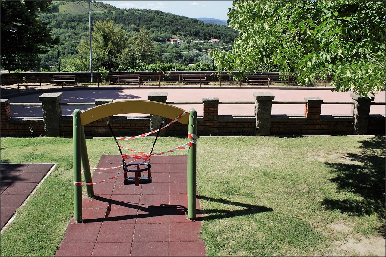 Una luce dura, che sottolinea un po' la straniante desolazione del luogo...un gioco che richiama subito alla mente vociare allegro dei bimbi, aria di spensieratezza..e che invece è tenuto vuoto,fermo, triste. In attesa di veder di nuovo la vita correre e scorrere in questi spazi. Non son del tutto sicura che mi convinca il pdr, in abbinata con il taglio sopra... ma il senso della foto arriva comunque.  _________________