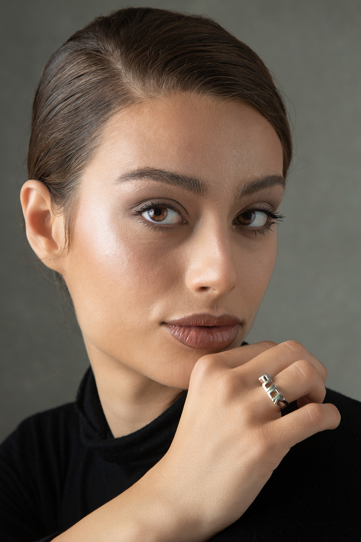 La scritta sull'anello cozza con la bellezza e la eleganza della ragazza.