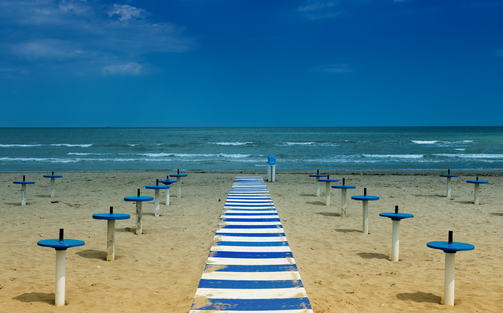 Mi piace molto l'immagine....ma c'è qualcosa che non mi convince nella postproduzione.La sabbia calda del primo piano si trasforma in blu avvicinandosi al mare e anche il blu in generale mi sembra un po troppo saturo Ciao