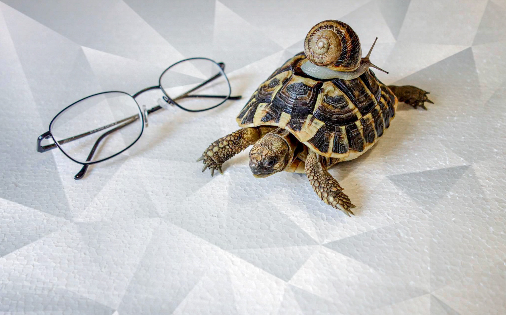 | Stando sulla tartaruga......avrà voluto provare l' ebrezza della velocità. Immagine, particolare e simpatica, realizzata molto bene. |