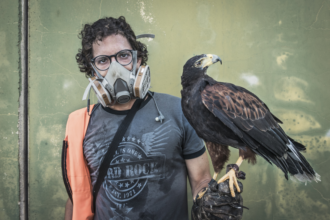 Soggetti mai banali nei tuoi ritratti.Certo il richiamo all'attualità aggiunge un effetto straniante d una persona già interessante di suo. Bello lo sguardo che ti regala, ottima la partecipazione e il coinvolgimento. Il suo amico poi è un esemplare stupendo. Complimenti,i tuoi lavori si fanno sempre notare. Ciao