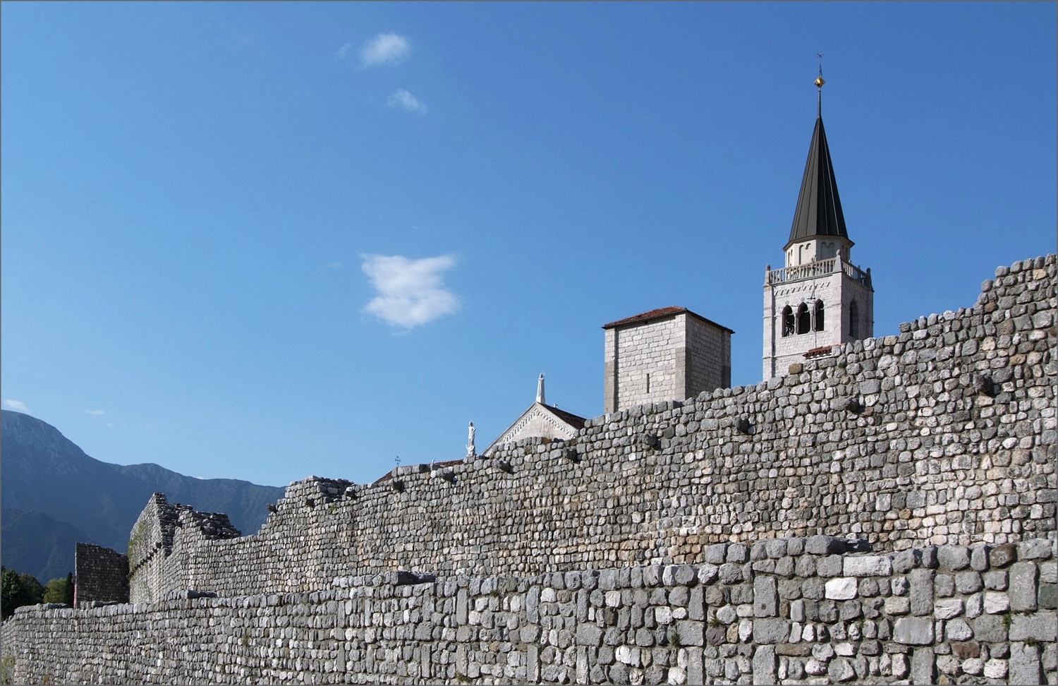 Lo spuntar del campanile e la chiesa, di questo muro a pietra, ben ripreso ci proponi una piacevole immagine.Ben vista.