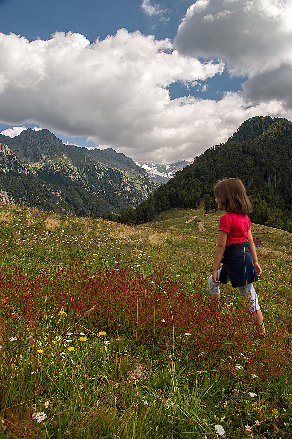 Profondità,colori e nitidezza super per questa stupenda scena montana con la bimba che si avventura con passo deciso alla scoperta di queste meraviglie.Complimenti! Ciao,Sergio.