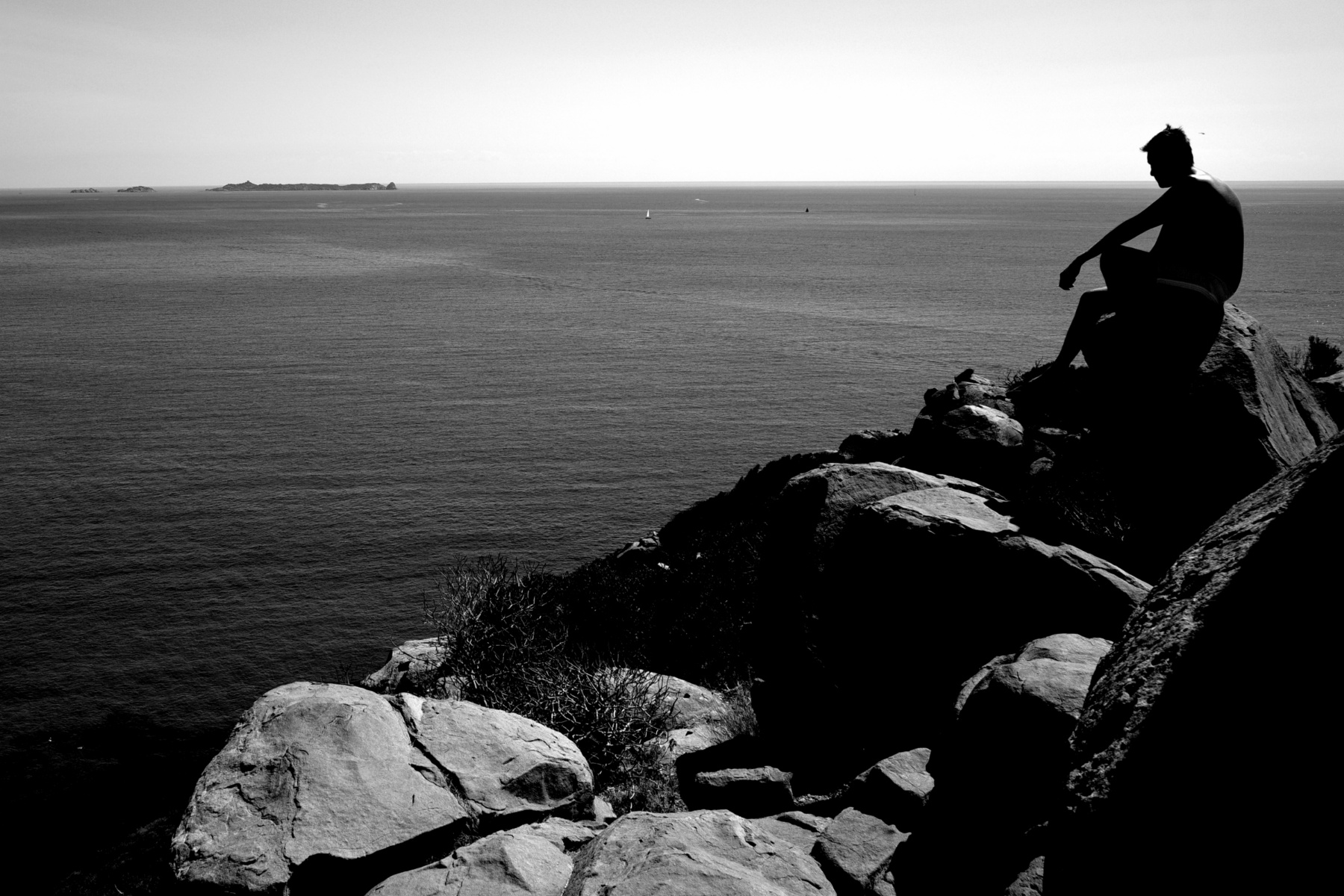 Composta benissimo e con un bn che intimo, molto personale e che richiama subito il pathos generato dal romantico ragazzo solitario accovacciato sulla roccia più alta davanti all' immensità del mare.