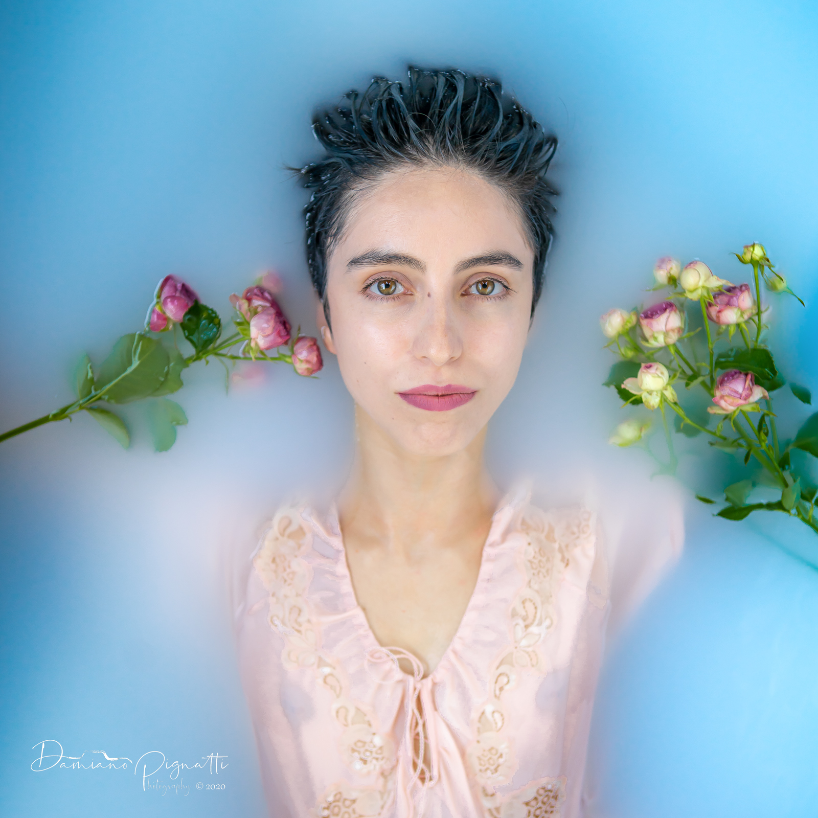 La.cosa che mi colpisce in questa immagine è la sua espressione, la naturalezza con cui ''galleggia'' con quell'accenno sorriso sul viso... è meno intima e introspettiva forse,ma qui si vede la sua spensieratezza,c'è gioco,si percepisce la complicità nel fare un qualcosa che vi diverte fare. Mi piace molto.. mi resta però sempre il dubbio per la sezione... che dici?