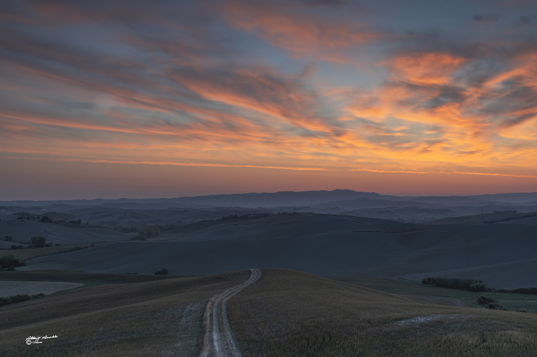 bella la stradina che ti conduce nell'immagine fino al cielo rosato e si perde tra le colline. Un altro ottimo scatto