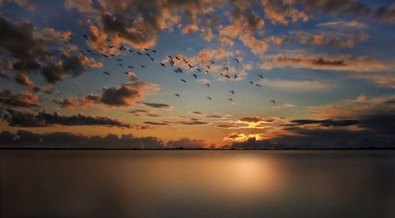 Nel complesso la cosa che più mi intriga è che non riesco a comprendere che si aspetti la luce giusta, facendo attenzione a non bruciare neanche una porzione di cielo, il passaggio dello stormo giusto, la nuvolosità giusta, la mancanza di ostacoli nell'acqua... sembra uno scatto meditato a puntino...