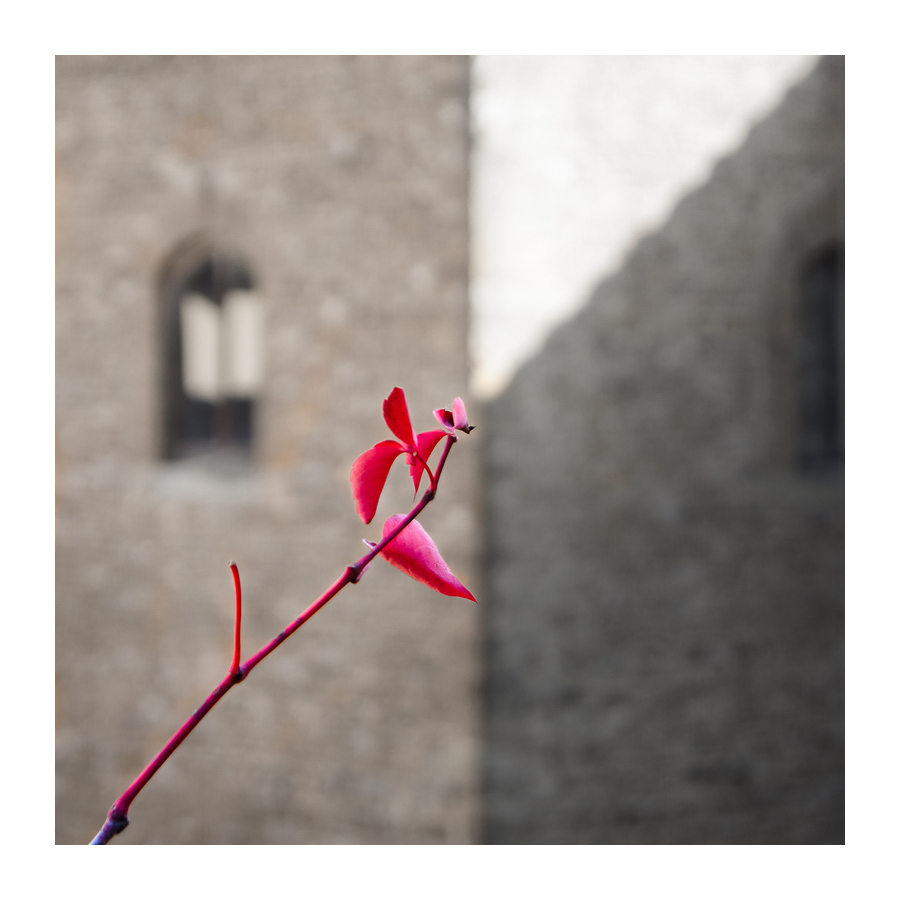 Bellissimo il colore di questo delicato rametto che resiste ai primi freddi e bella la geometria nello sfocato dello sfondo. Immagine molto gradevole