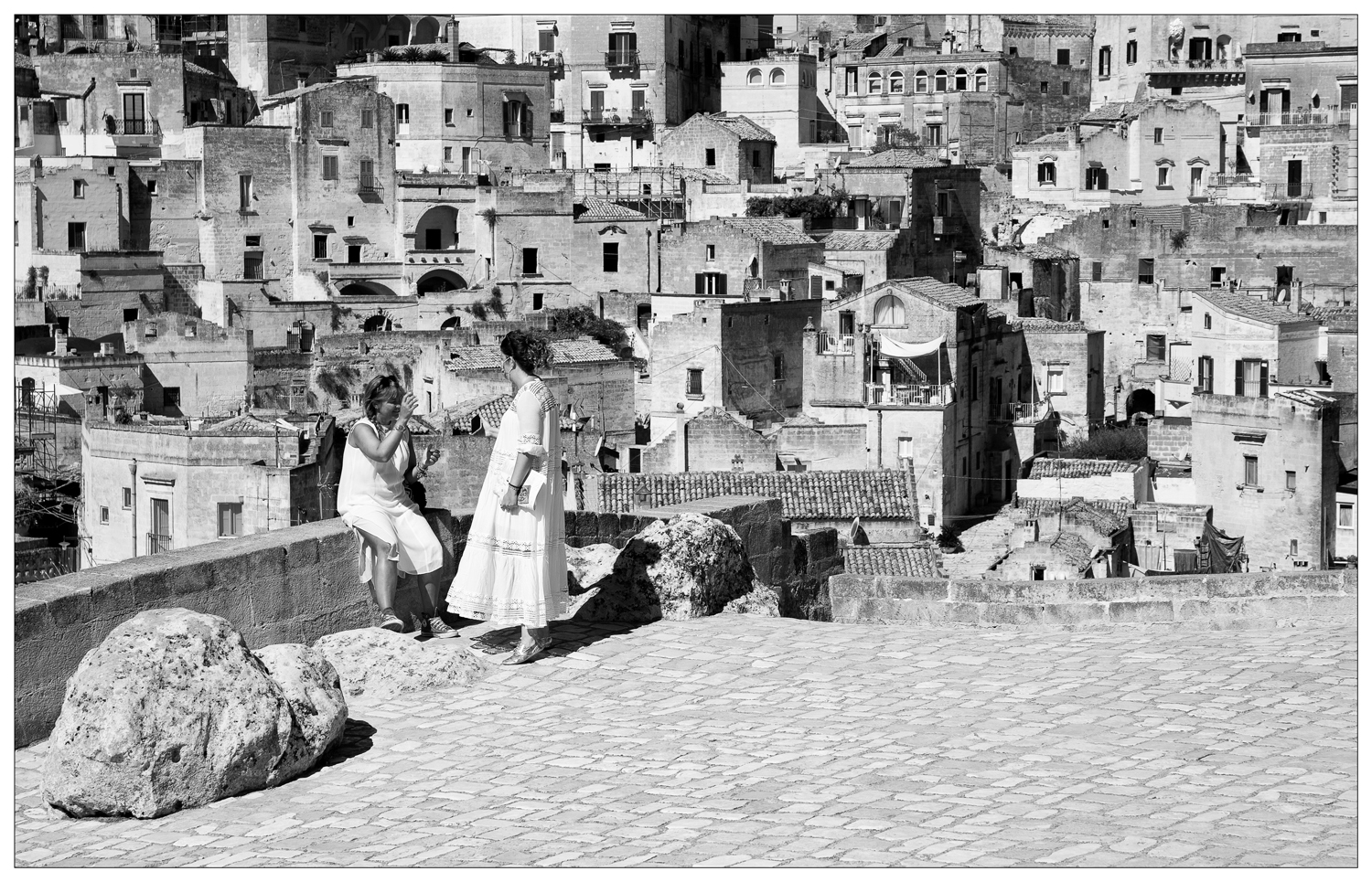 Che bella questa scena. Ha la resa cinematografica dei film anni 50-60 con Sordi o Totò. Luminosa e dalle mille sfumature di grigio splendenti. Mi sembra una di quelle raffigurazioni del medioevo dove affastellavano le abitazioni e i piani in lontananza come se fossero schiacciate su un unico piano. Le due signore che chiacchierano sono il tocco di vita ad una scena altrimenti troppo paesaggisticamente descrittiva  _________________ - Fotografo della domenica |