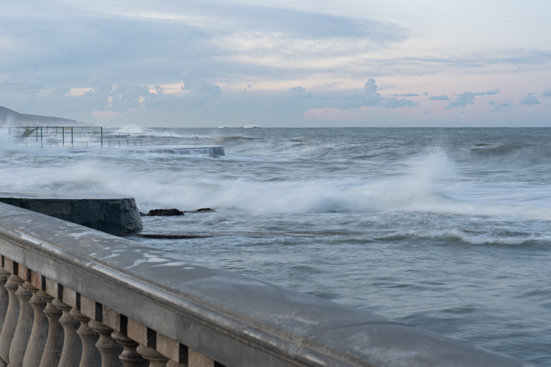 La fotocamera era ben riparata da questa mareggiata... Gradevole la ripresa di queste onde che si infrangono nella terrazza..